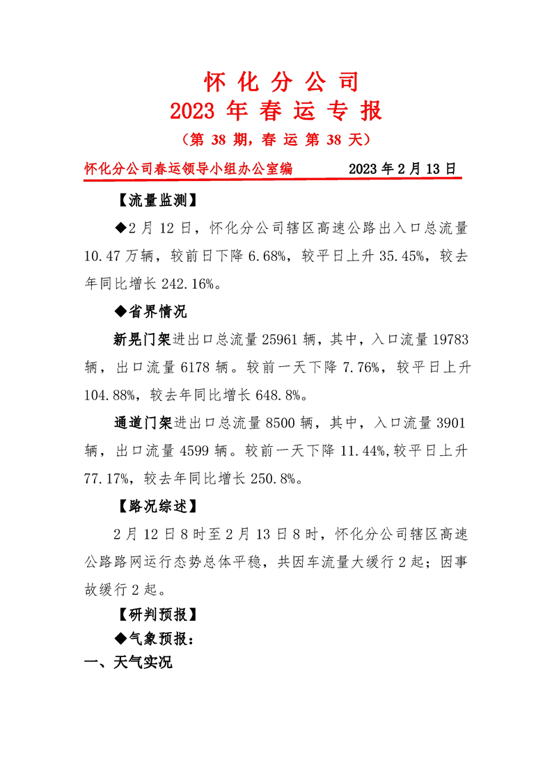 2023年懷化分公司春運(yùn)專(zhuān)報(bào)-第38期