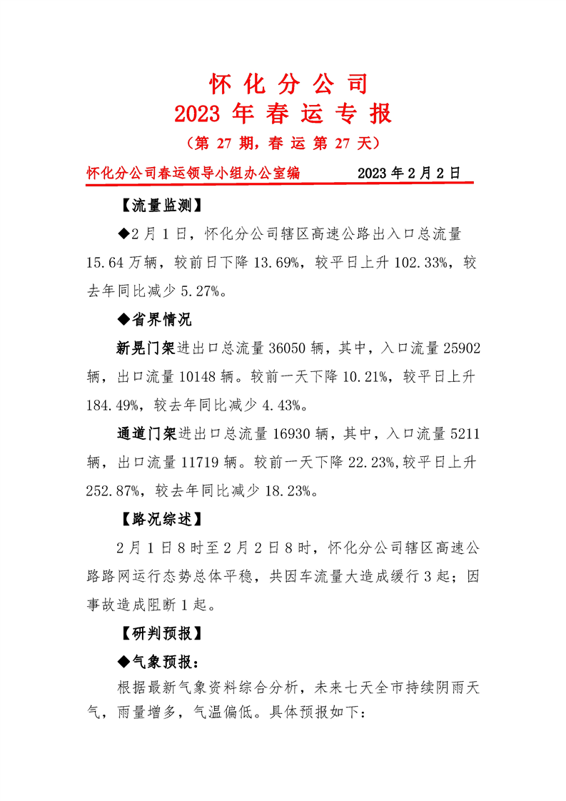 2023年懷化分公司春運(yùn)專報(bào)-第27期