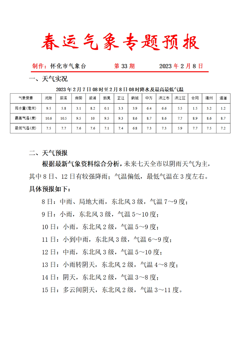 春運(yùn)氣象專題預(yù)報(bào) 第33期