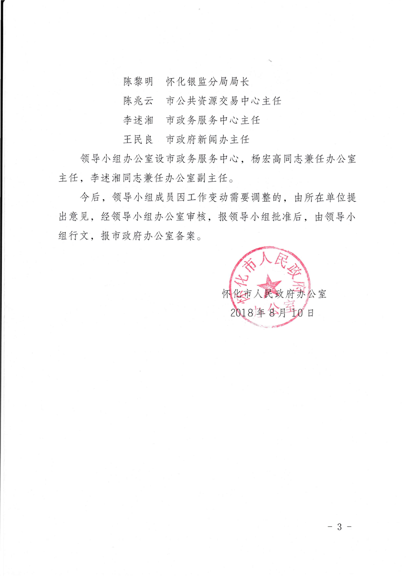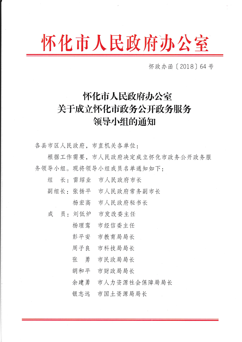 懷化市人民政府辦公室關(guān)于成立懷化市政務(wù)公開(kāi)政務(wù)服務(wù)領(lǐng)導(dǎo)小組的通知