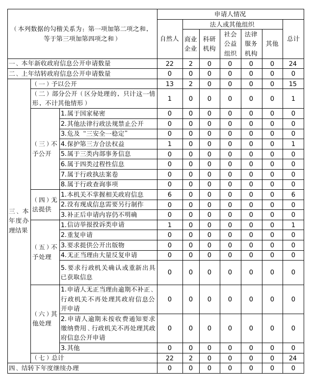嚴(yán)格執(zhí)行政府信息公開條例有關(guān)依申請公開的規(guī)定,依法辦理政府信息公開申請件。全年收到9件線上信息公開申請、15件線下信息公開申請,均已按時(shí)辦結(jié)。在行政復(fù)議、訴訟方面,也未收到有關(guān)政府信息公開的行政復(fù)議申請,也未發(fā)生關(guān)于政府信息公開的行政訴訟案件。