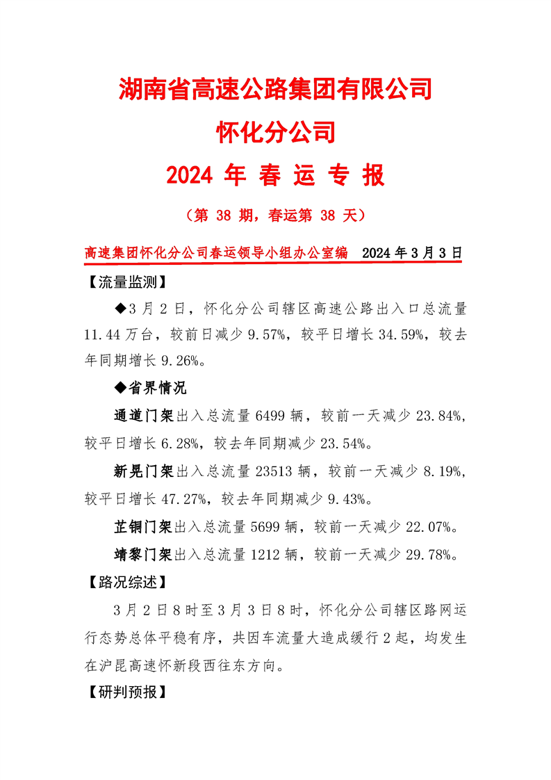2024年懷化分公司春運(yùn)專報(bào)-第38期