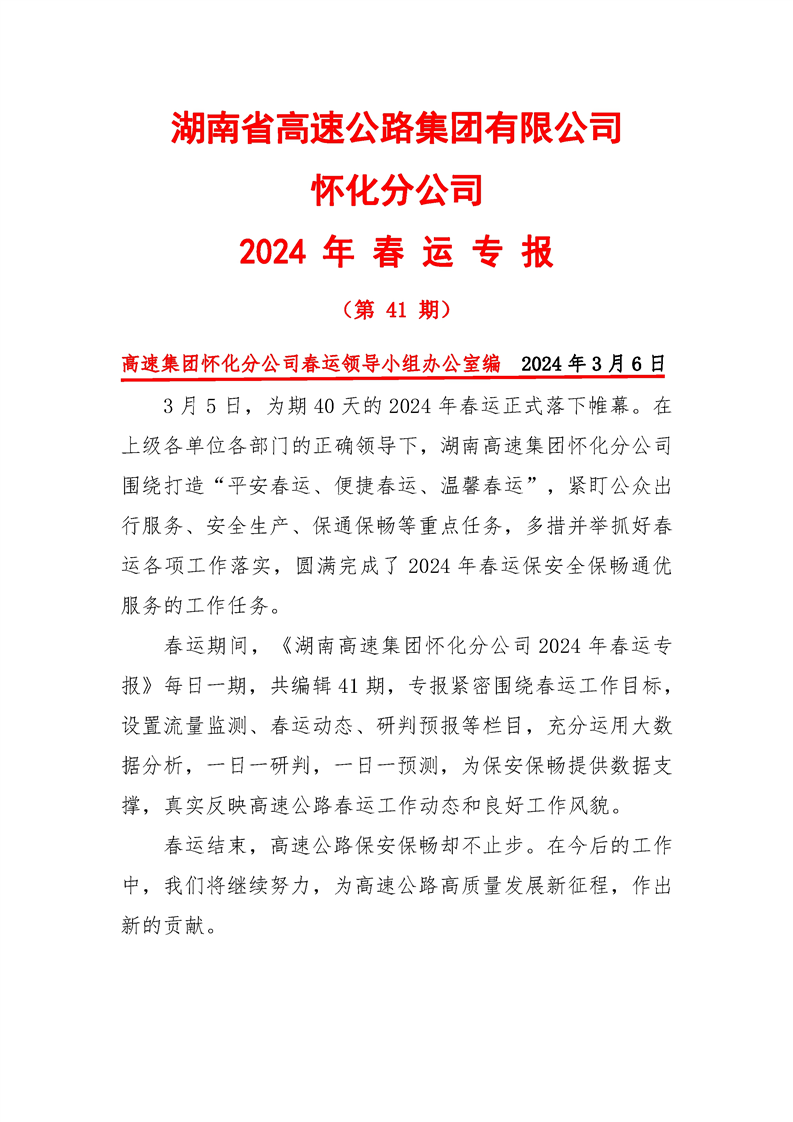 2024年懷化分公司春運(yùn)專報(bào)-第41期