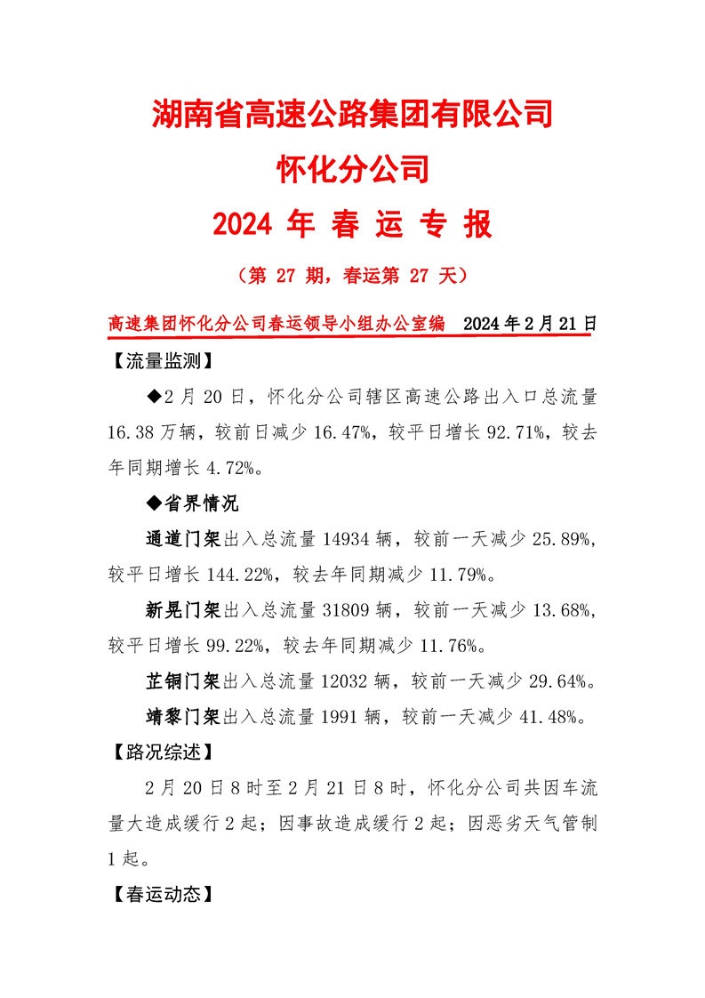 2024年懷化分公司春運(yùn)專報(bào)-第27期