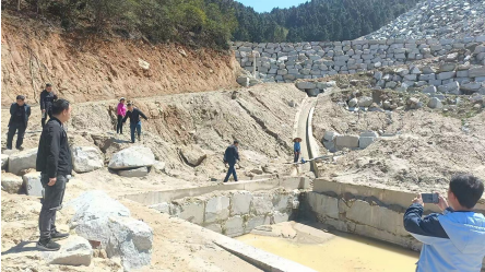 當(dāng)天,牽頭單位洪江市自然資源局組織市水利局、懷化市生態(tài)環(huán)境局洪江市分局、洪江市農(nóng)業(yè)農(nóng)村局、洪江市灣溪鄉(xiāng)人民政府,到舉報點灣溪鄉(xiāng)云峰村涉事礦業(yè)公司現(xiàn)場進行核實。經(jīng)過現(xiàn)場觀測勘查和相關(guān)證照及批文收集,確認(rèn)礦山自2021年12月30日采礦許可證到期后一直停采,該區(qū)域臨時用地手續(xù)、環(huán)評手續(xù)齊全,沒有占用耕地的情況。場內(nèi)廢水經(jīng)收集沉淀處理后全部循環(huán)使用,修建有一座雨水收集池和應(yīng)急處理池等循環(huán)設(shè)備用以實現(xiàn)雨污分離。工作人員和當(dāng)?shù)厝罕娨黄鸬匠恋沓?、雨水出水口及附近農(nóng)田實地查驗,發(fā)現(xiàn)沉淀池出水較清澈,無泥沙,附近農(nóng)田和雨水出水口水流清澈,沒有泥沙流入農(nóng)田,但在棄土場底部附近有約十多平方米旱土被少量的泥沙掩蓋。當(dāng)即對企業(yè)負(fù)責(zé)人提出整改要求,目前涉事企業(yè)組織人員按照方案已完成對棄土場底部附近旱土泥沙的全面清理,共清理泥沙約2m3,疏通水渠約5米,安裝了水閥1個。