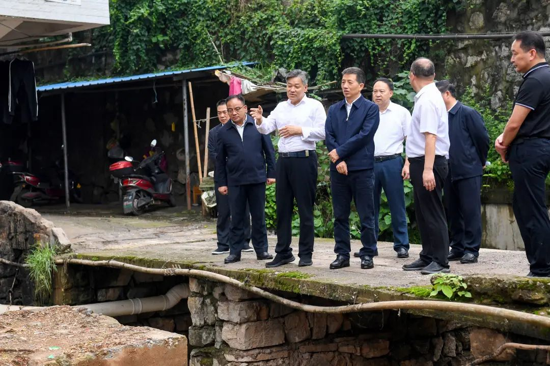 (5月12日上午,市委書記許忠建在城區(qū)調(diào)研督導(dǎo)生態(tài)環(huán)境問題。圖為許忠建來到茅谷沖溪片區(qū)察看了解雨污分流改造工程進(jìn)展情況。懷化日報全媒體記者 楊智偉 攝)