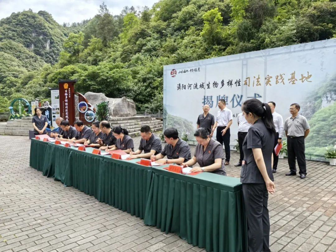 6月5日是世界環(huán)境日,新晃縣人民法院黨組書記、院長楊琳慧帶隊與貴州省鎮(zhèn)遠縣、甕安縣、黃平縣、施秉縣、岑鞏縣、玉屏侗族自治縣、銅仁市碧江區(qū)人民法院在貴州省鎮(zhèn)遠縣下?陽河景區(qū)游客服務中心廣場開展“?陽(水)河流域生物多樣性司法實踐基地”揭牌活動,并共同簽署了《?陽(水)河全流域環(huán)境資源跨省州縣司法保護協(xié)作機制》。