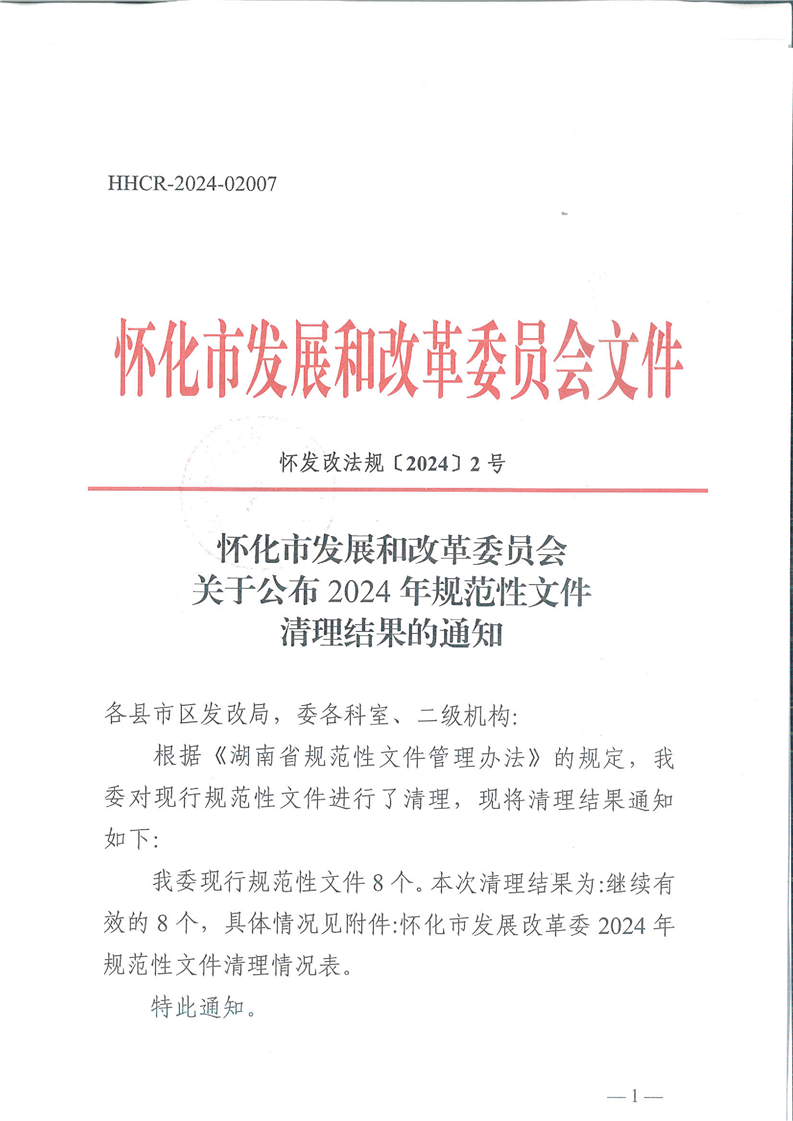 懷化市發(fā)展和改革委員會(huì)關(guān)于公布2024年規(guī)范性文件清理結(jié)果的通知